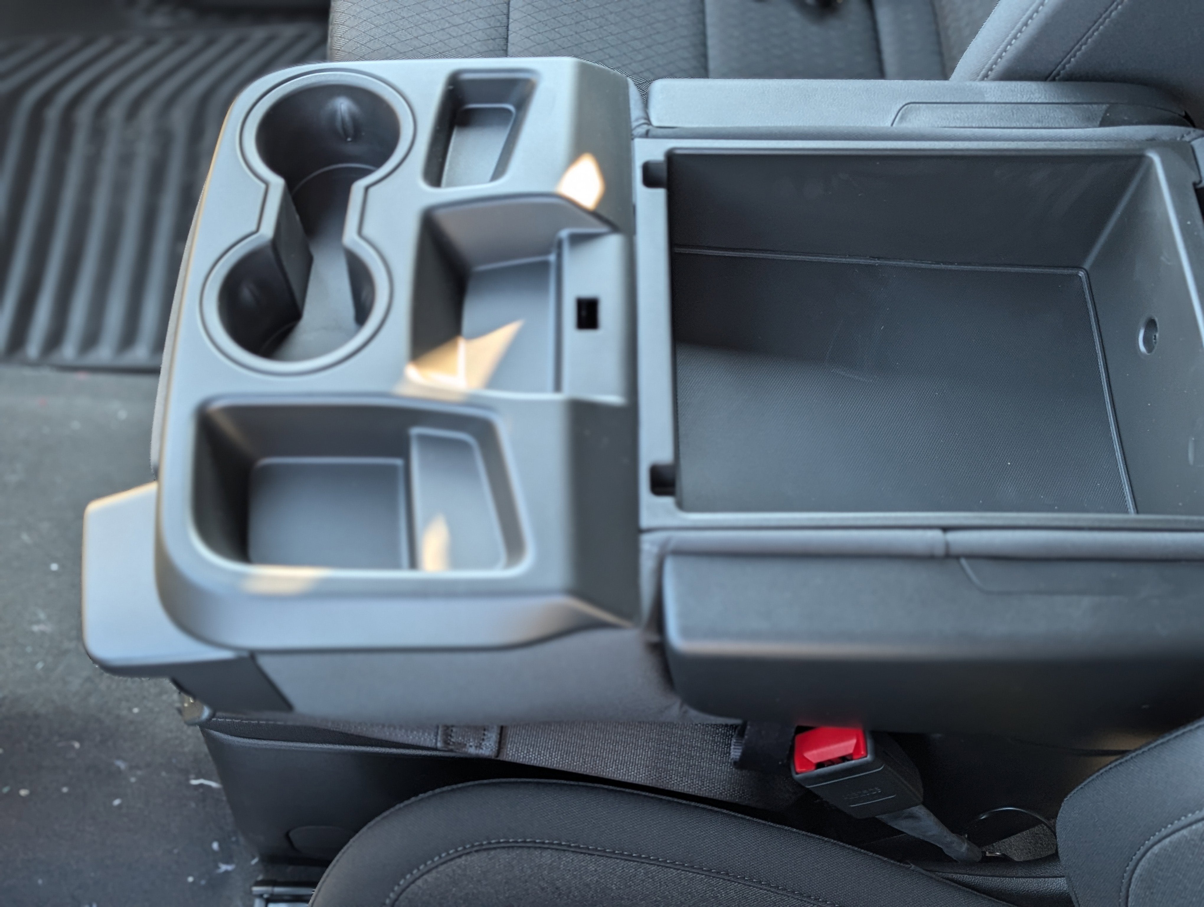 - Seats, front 40/20/40 split-bench with covered armrest storage and under-seat storage (lockable)