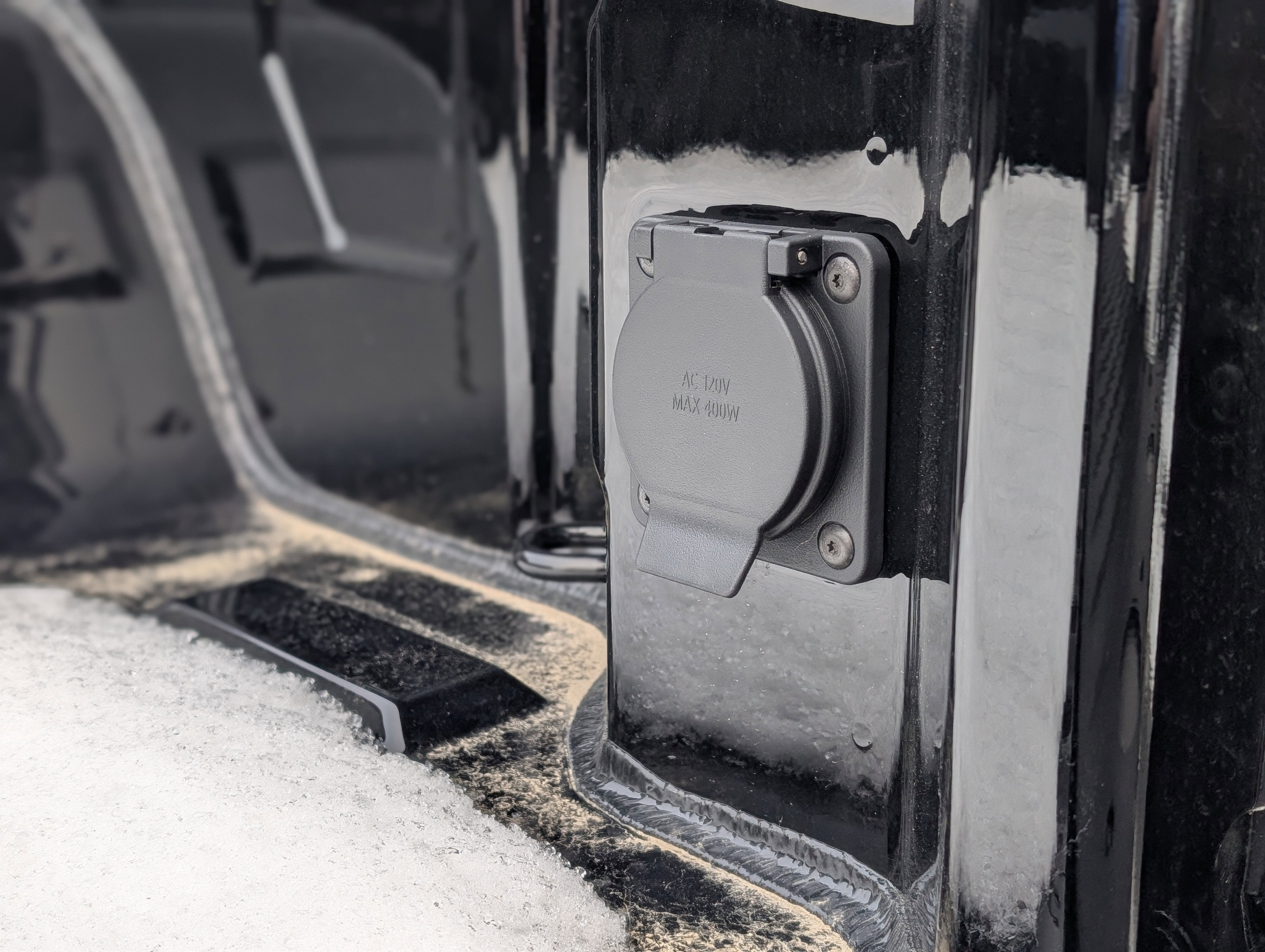 - Power outlet, bed mounted, 120-volt (400 watts shared with (KI4) interior power outlet)