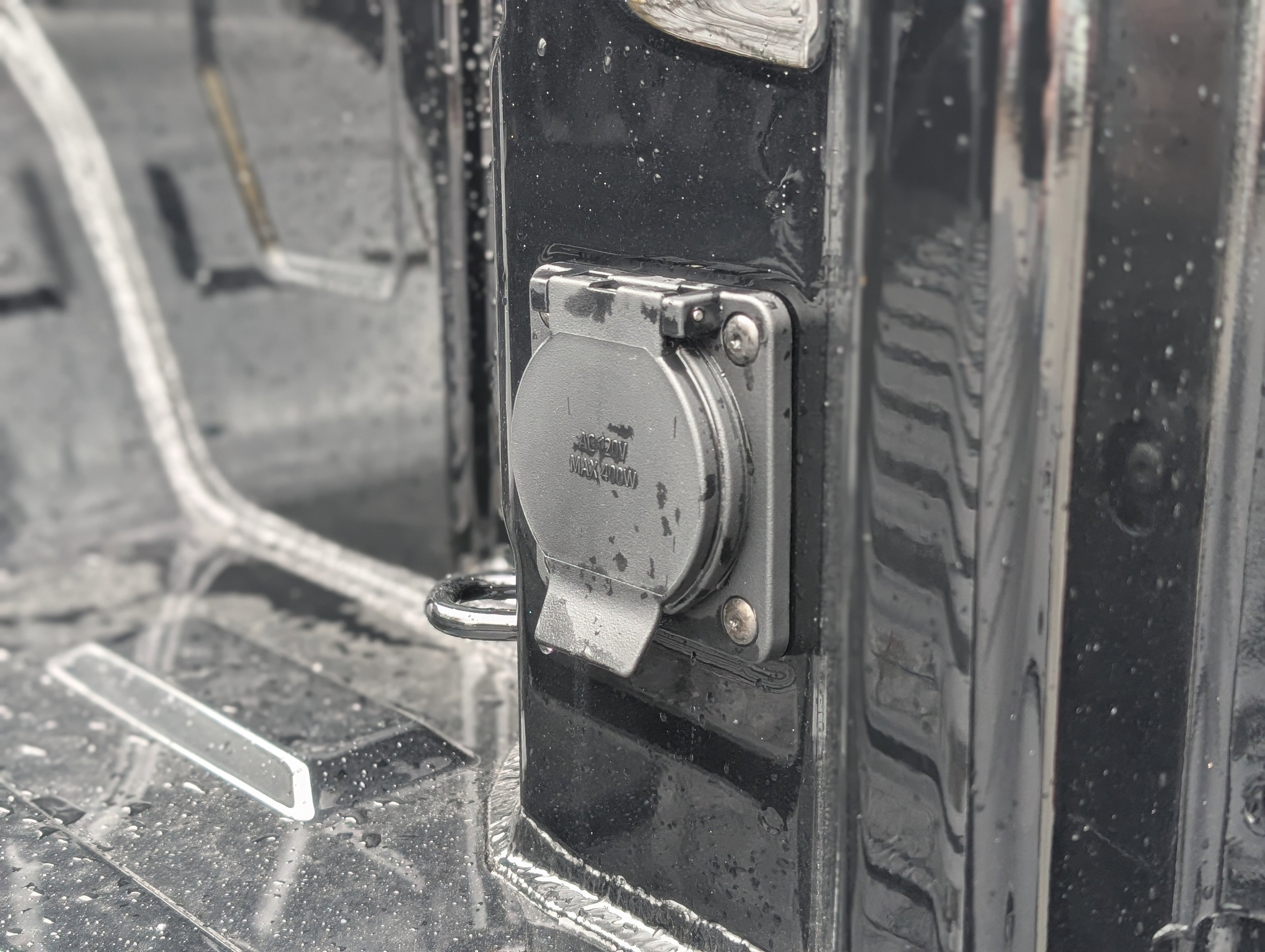 - Power outlet, bed mounted, 120-volt (400 watts shared with (KI4) interior power outlet)