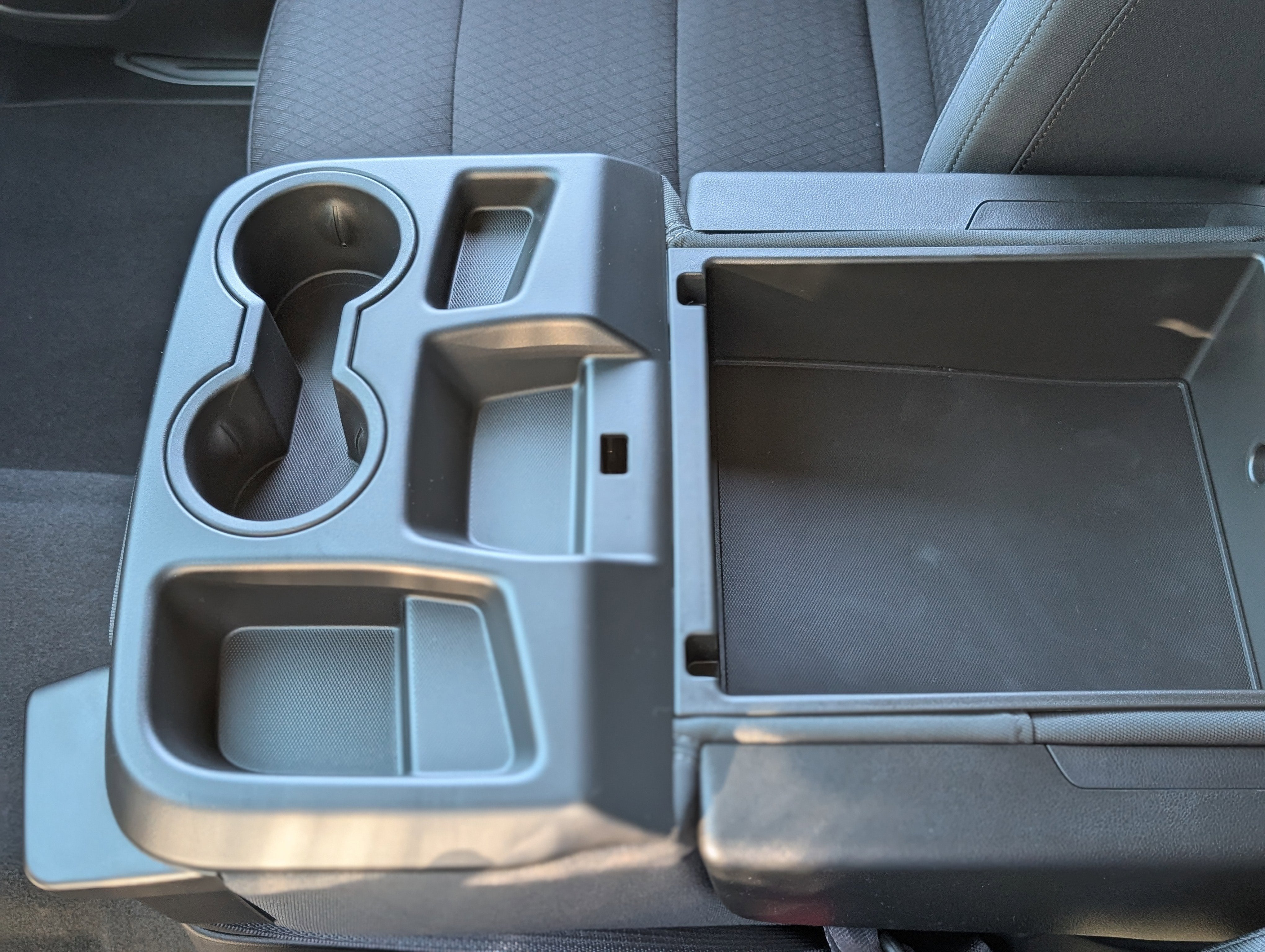 - Seats, front 40/20/40 split-bench with covered armrest storage and under-seat storage (lockable)