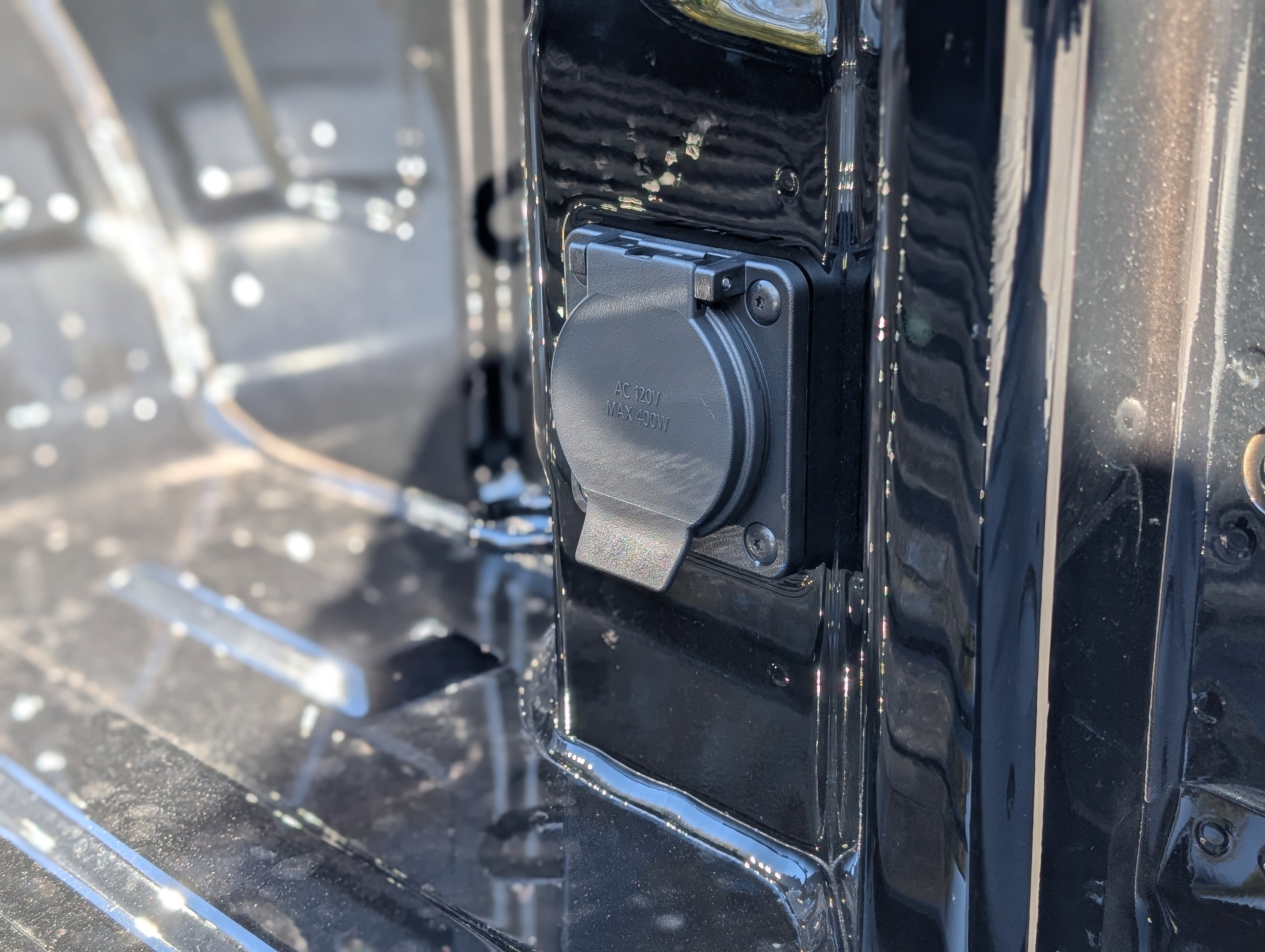 - Power outlet, bed mounted, 120-volt (400 watts shared with (KI4) interior power outlet)