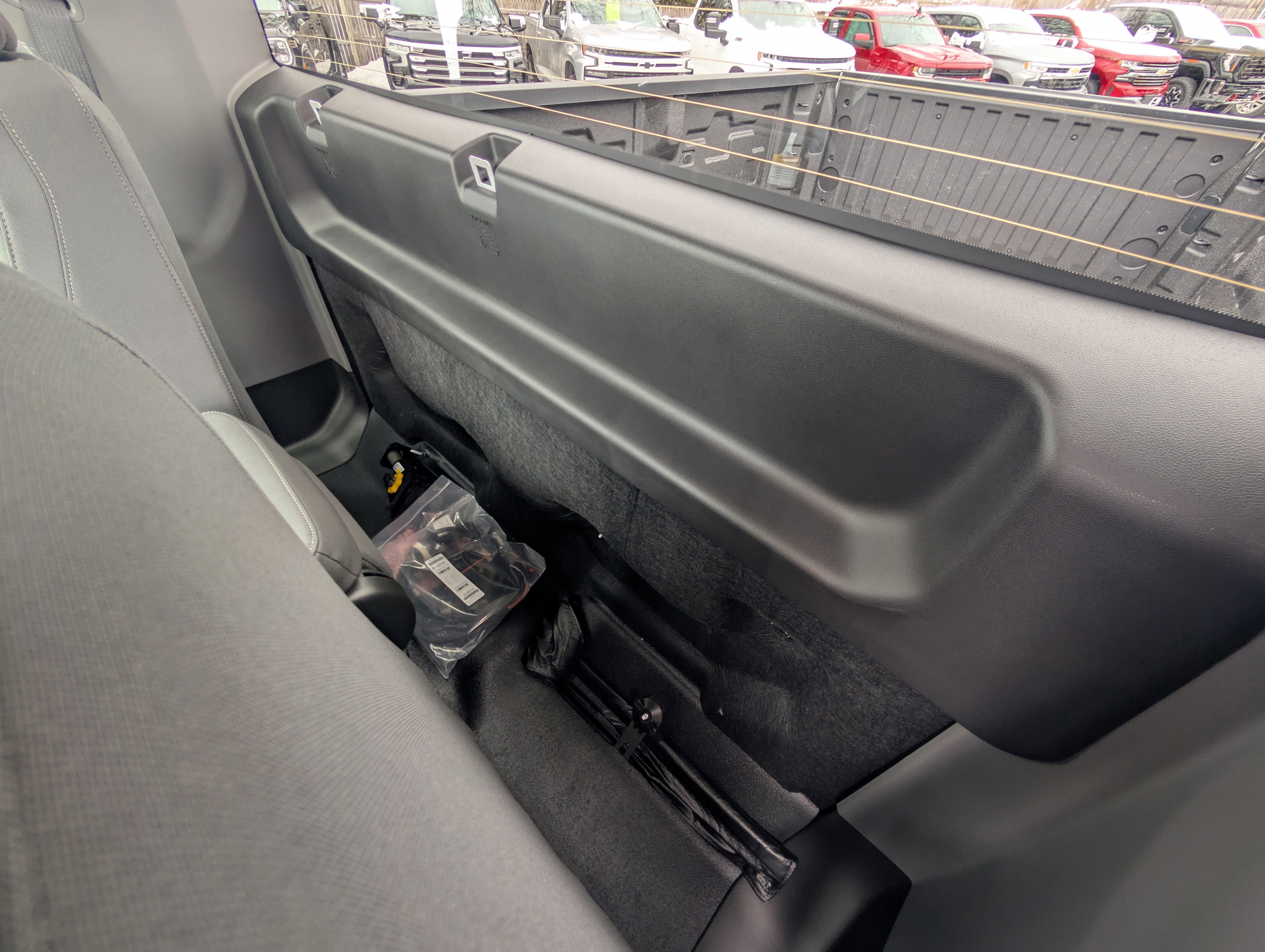 - Seats, front 40/20/40 split-bench with covered armrest storage and under-seat storage (lockable)