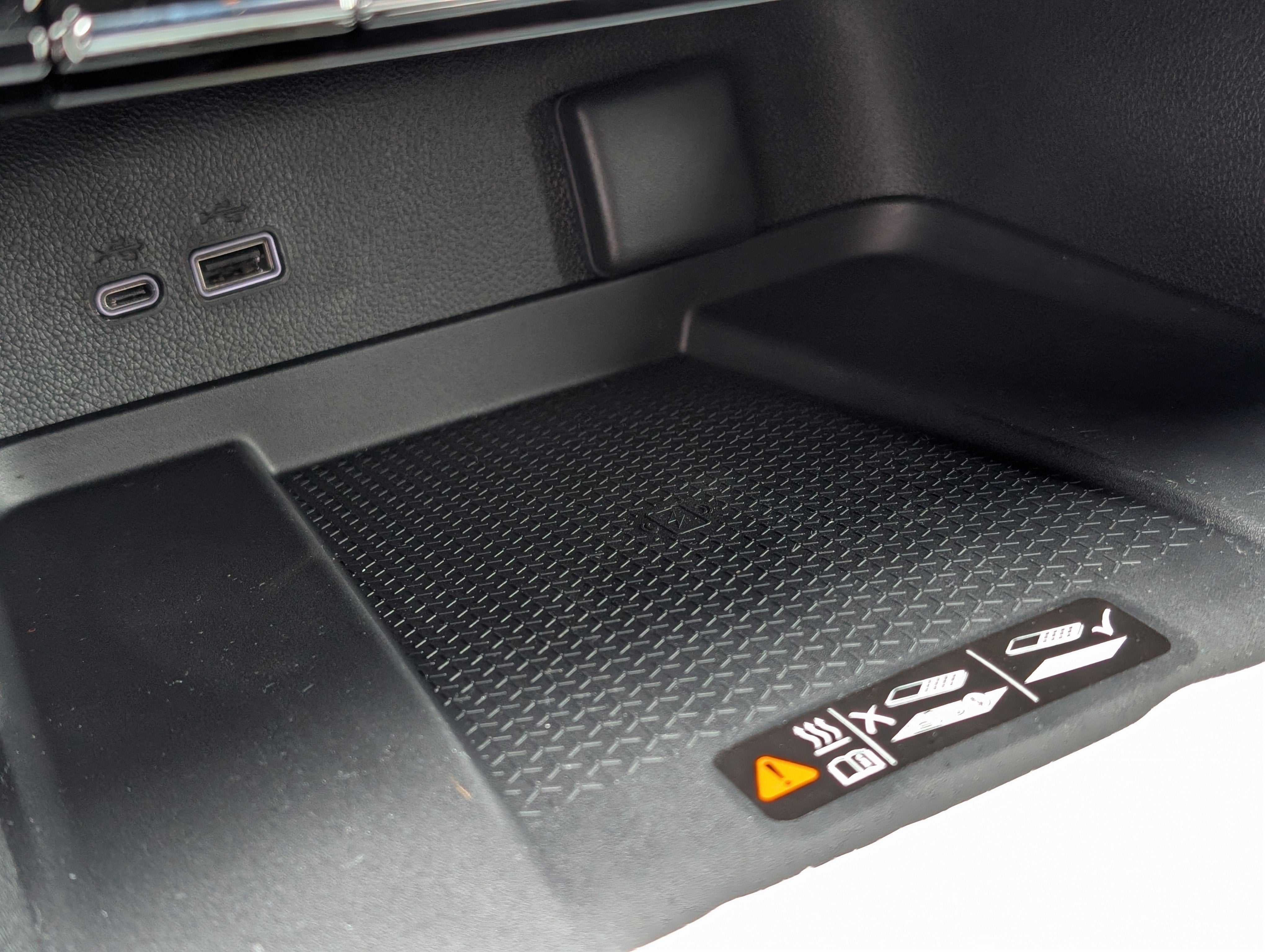 - USB ports, 2, one type A and one type-C data/charge, located in the front area of the center console
