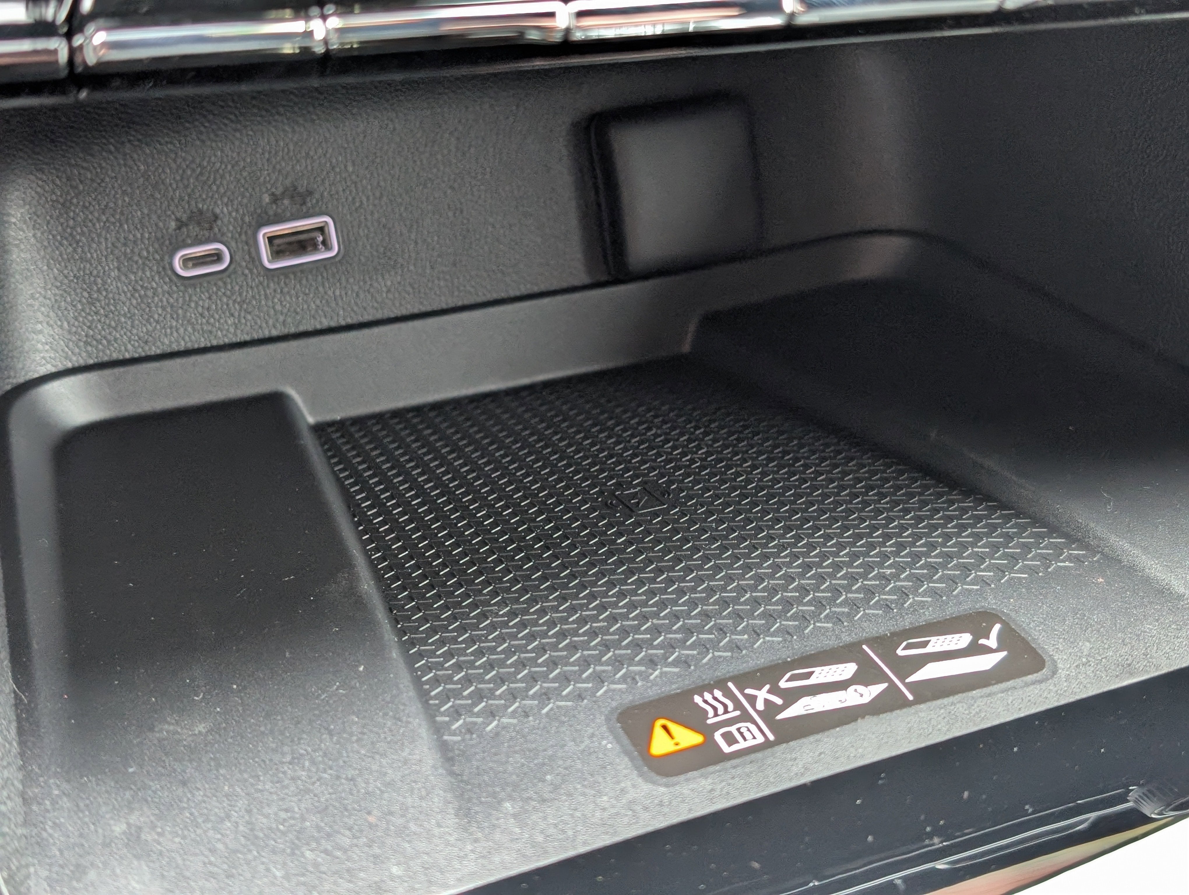 - USB ports, 2 type-A, charge-only one on each outboard location