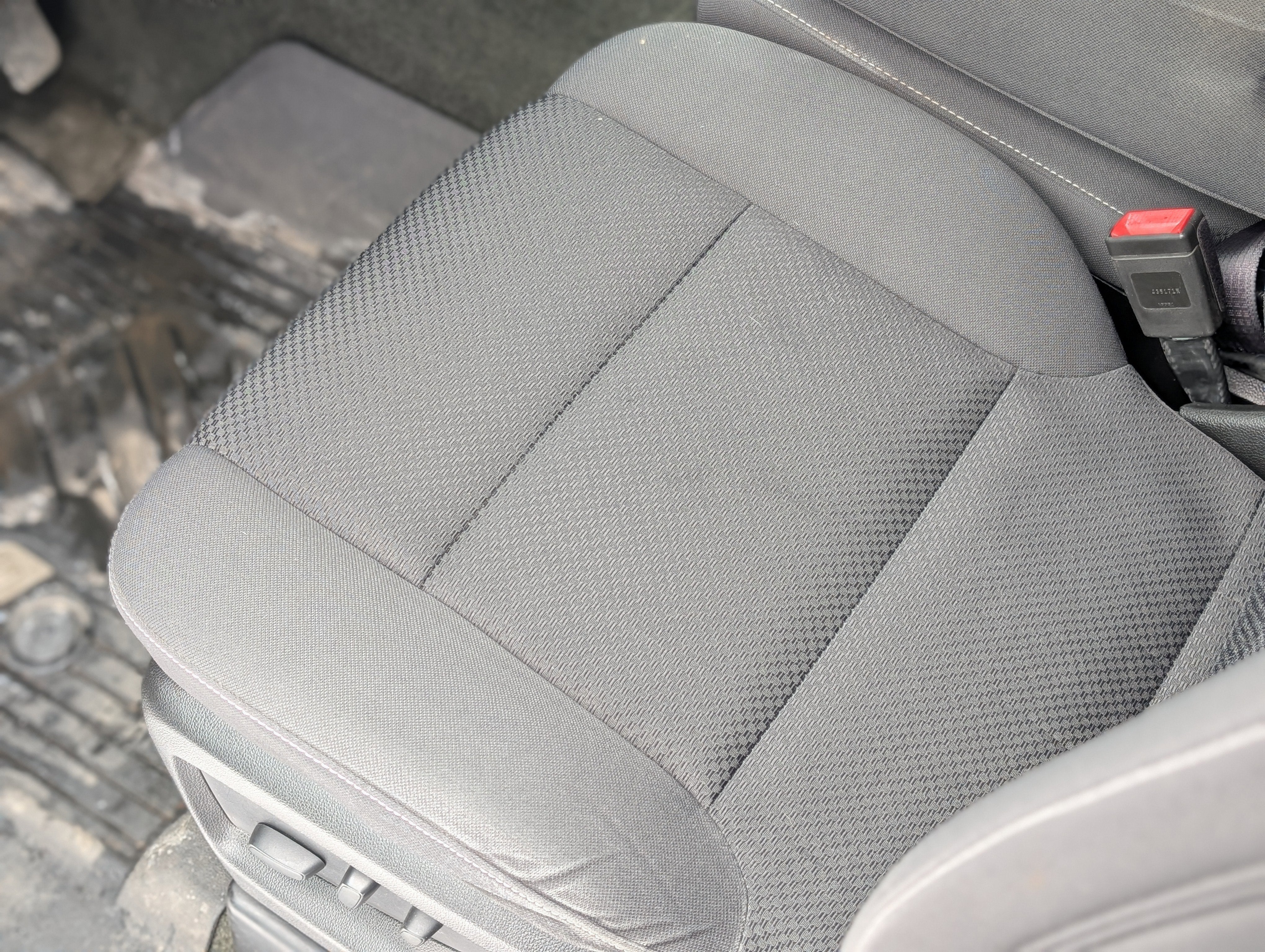 - Seats, front 40/20/40 split-bench, 3-passenger. Includes driver and front passenger recline with outboard head restraints and center fold-down armrest with storage. Includes manually adjustable driver lumbar, lockable storage compartment in seat cushion, and storage pockets