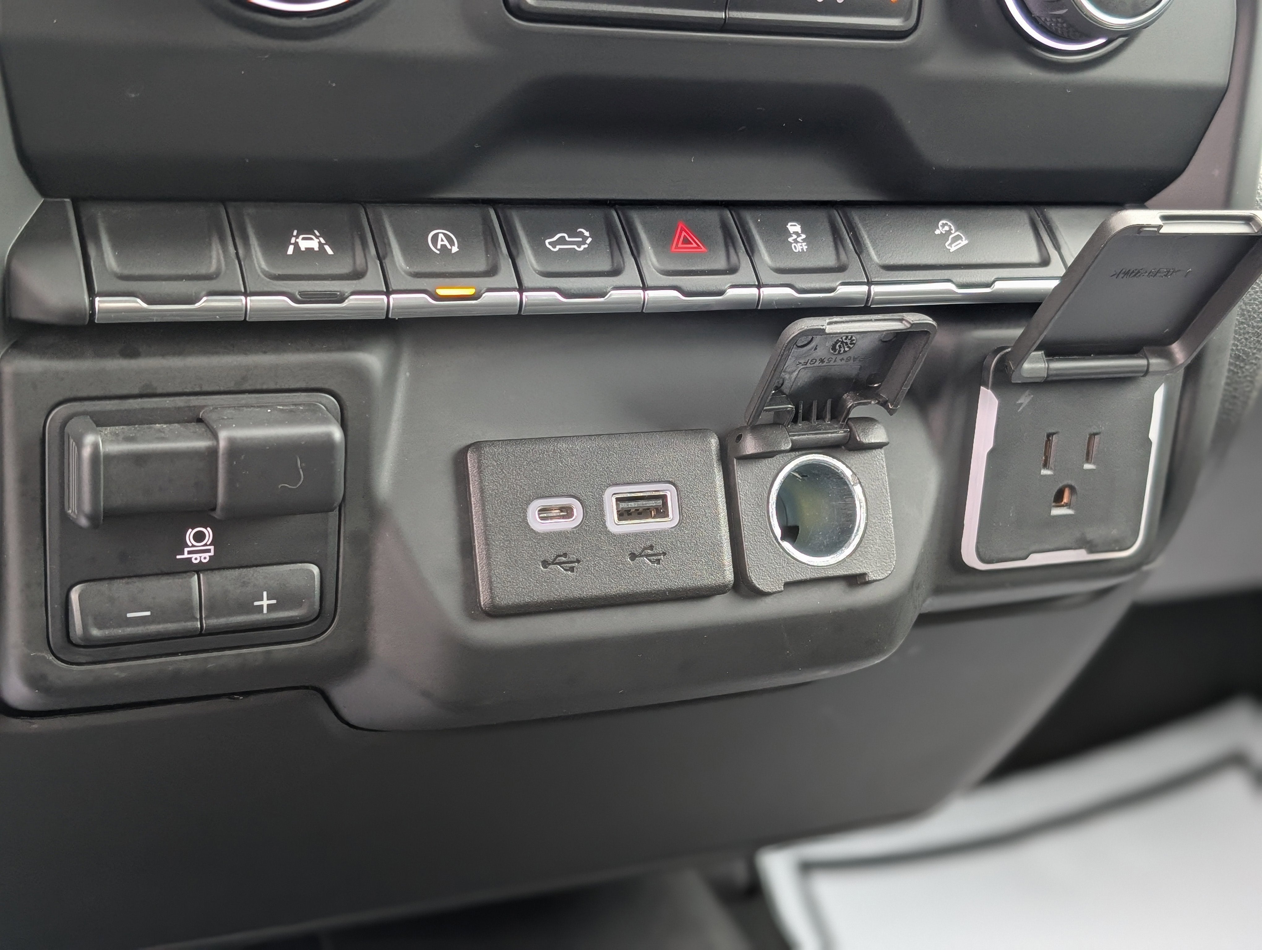 - Power outlet, instrument panel, 120-volt (400 watts shared with (KC9) bed mounted power outlet) (Beginning with the start of production certain vehicles will be forced to include (RFO) Not Equipped with USB ports rear. Vehicles built prior to 9-19-22 will include Cab mounted power outlet. Certain vehicles built on or after 9-19-22 may be forced to include (08R) Not Equipped with functional Cab or Bed Power Outlets, which removes the Cab and Bed power outlet functionality. See dealer for details or the window label for the features on a specific vehicle. Vehicles equipped with (08R) Not Equipped with functional Cab or Bed Power Outlets, will be eligible for later dealer retrofit to enable functionality. See dealer for details or the window label for the features on a specific vehicle.)