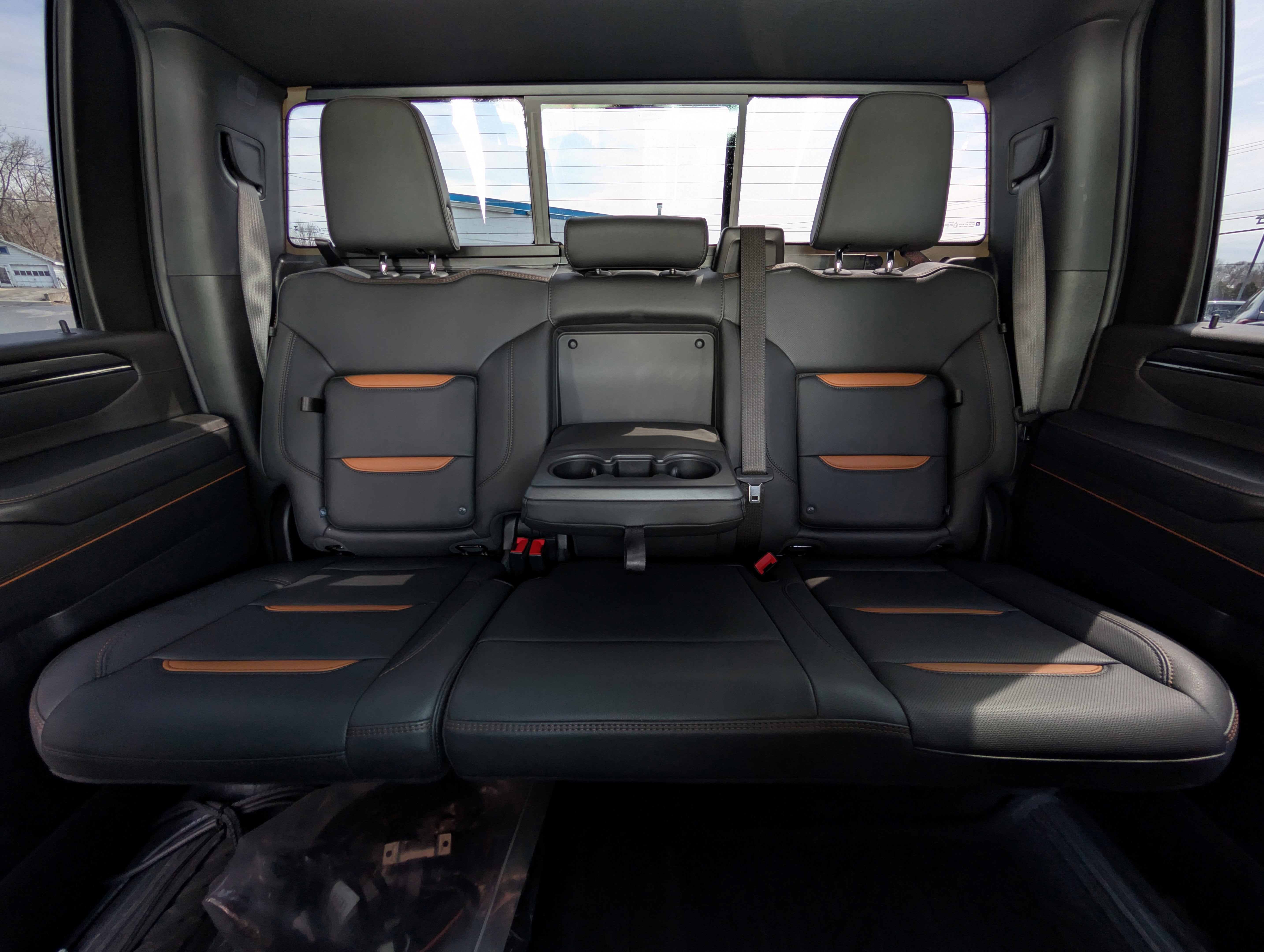- Seat, Up-level Rear with Storage Package 60/40 folding bench, includes full-length bench seat, seatback storage on left and right side, center fold out armrest with 2 cupholders, full cab width under-seat storage, (includes child seat top tether anchor)