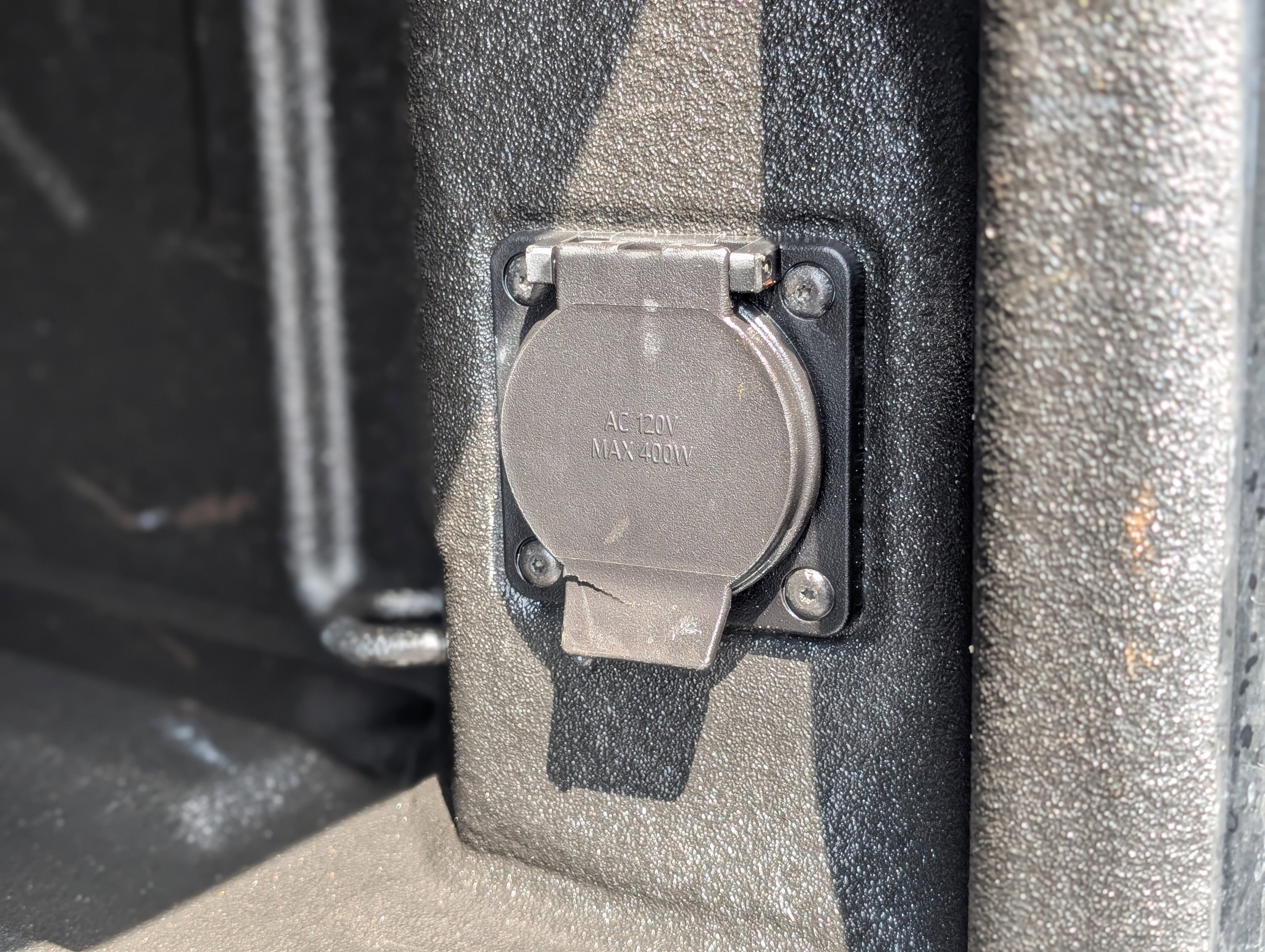 - Power outlet, bed mounted, 120-volt (400 watts shared with (KI4) instrument panel mounted power outlet)